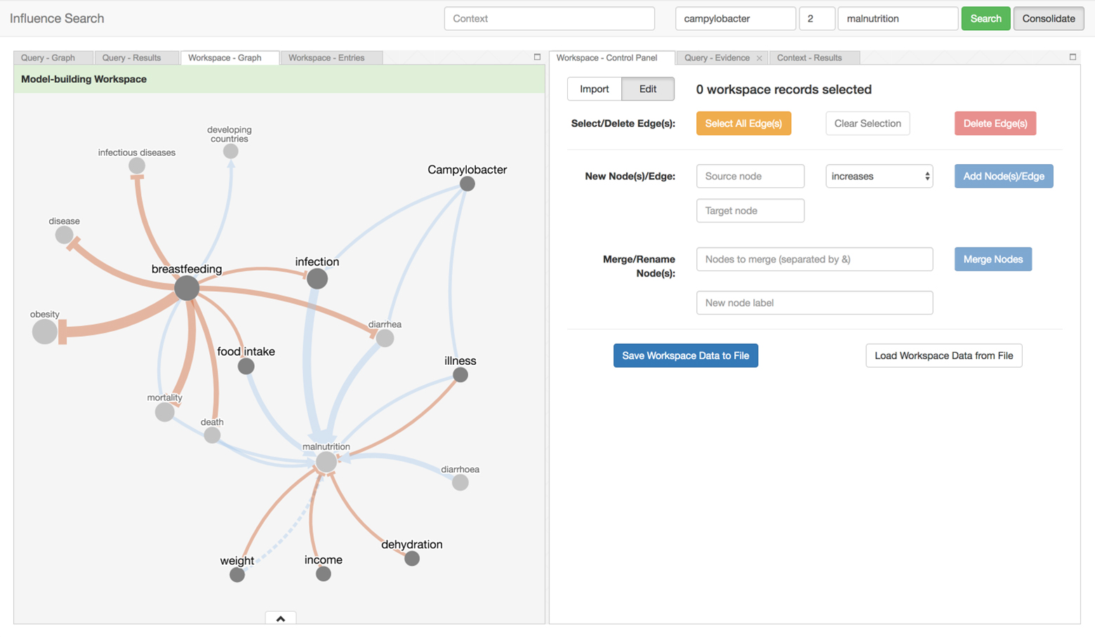 The tool can be used to search for influence pathways and aggregate them to into influence models that address various aspects of child growth and development. Thirdly, a collaboration between subject matter experts and decision-makers led to this tool being leveraged to construct a conceptual model of risk factors and mechanisms connecting infant growth restriction to later obesity.